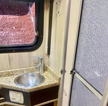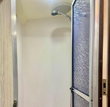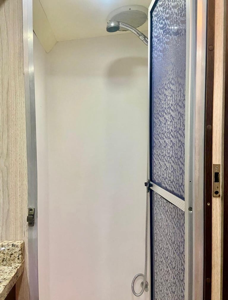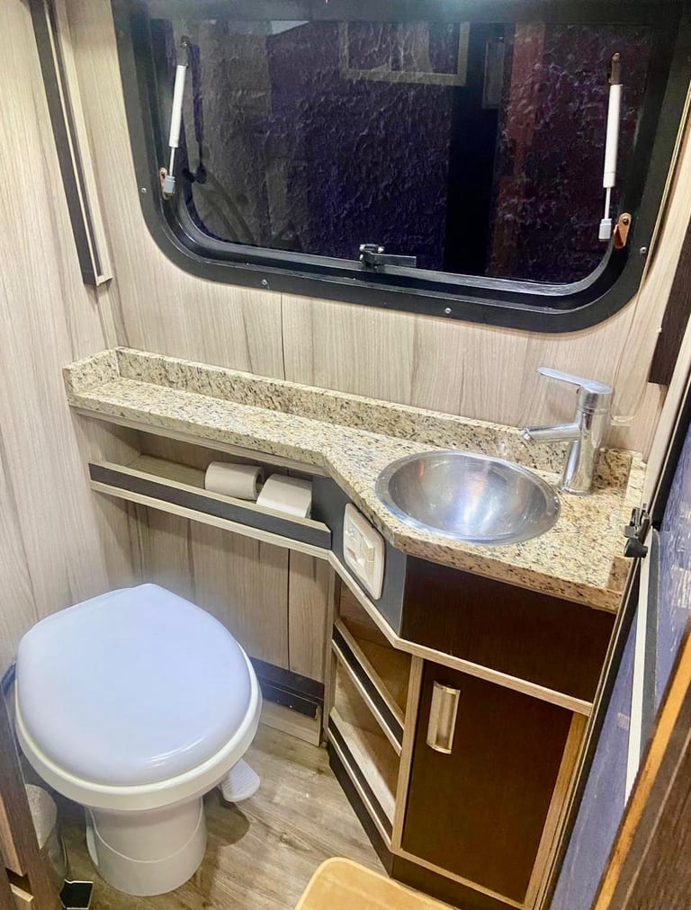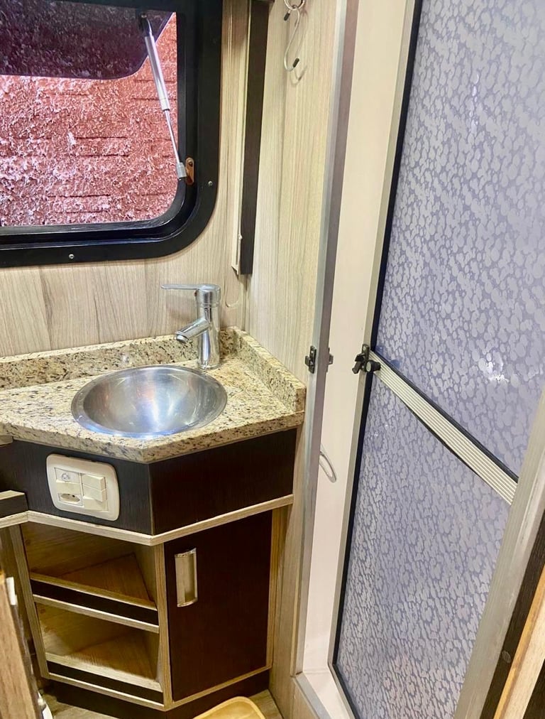 -Banheiro completo com caixa de detritos, box separado com exaustor;